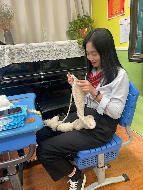 本学期同学们学习了各种编织技巧和方法,包括毛线编织和钩针编织,内容涵盖了从基础到进阶的各种编织技巧,内容包括平针、辫子针、短针、中长针、长针等等。通过细致的解说、示范和小组共同研讨学习,让同学们可以轻松掌握编织的基本技巧。同时,也鼓励同学们发挥自己的创造力,尝试不同的编织方法和图案,让每一件作品都充满个性。
