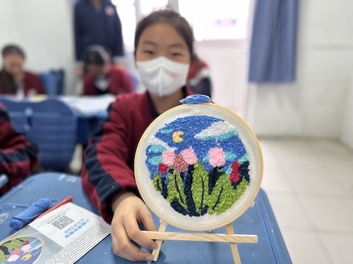 心灵手巧社团致力于弘扬中国传统文化,除了非遗漆扇,本学期还在母亲节前夕制作了非遗缠花发簪,感恩深厚母爱;在春分时节制作非遗纸浆画,感受传统节气。