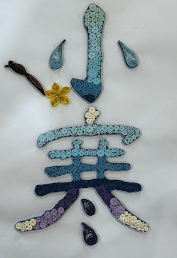 衍纸艺术造型丰富、制作简单、作品精美,既能激发学生的学习兴趣,又贴近学生的生活,为学生提供了艺术创作和发挥想象力的空间。这学期的的课程内容为了契合艺术节的主题,我们将衍纸结合二十四节气字体方式进行呈现。二十四节气是中华民族悠久历史文化的重要组成部分,表达了人与自然宇宙之间独特的时间观念,蕴含着中华民族悠久的文化内涵和历史积淀。