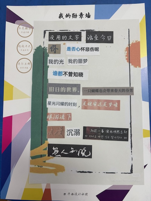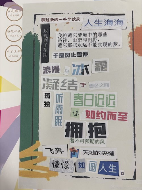 打破常规创作边界,利用素材完成拼贴诗成为社团创新之举。旧杂志、报纸变身诗意宝库,剪下的只言片语在成员巧手下重获新生。字与字邂逅,行与行交织,跳跃的意象、独特的韵律,拼贴出专属的诗意画卷,激发无限创造力,挖掘文字隐藏魅力。