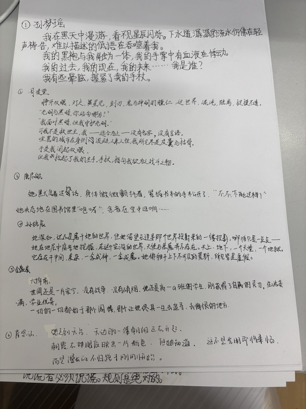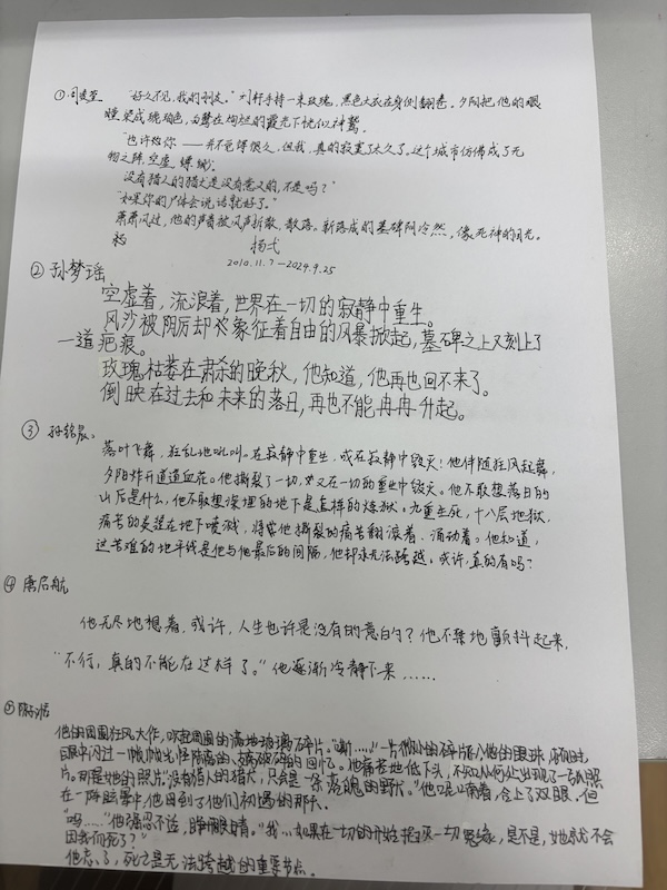 第五周,文学社开展了故事接龙活动。社员们每人撰写一段内容,通过接力的方式,将一个故事完整地补写出来。大家充分发挥想象力和创造力,用妙笔为故事增添各种奇妙情节,让一个个故事在众人的笔下逐渐丰满。