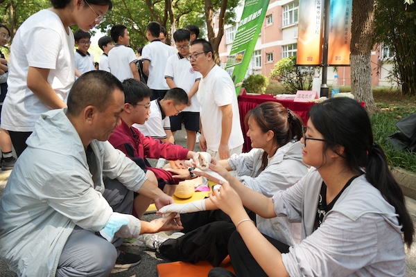 9月5日下午,苏州外国语学校初中部炫彩社团招新嘉年华火热开启,东门林荫道化身为30多个社团的展示舞台,人声鼎沸,活力四射,每一个展位前都围满了好奇而兴奋的同学。