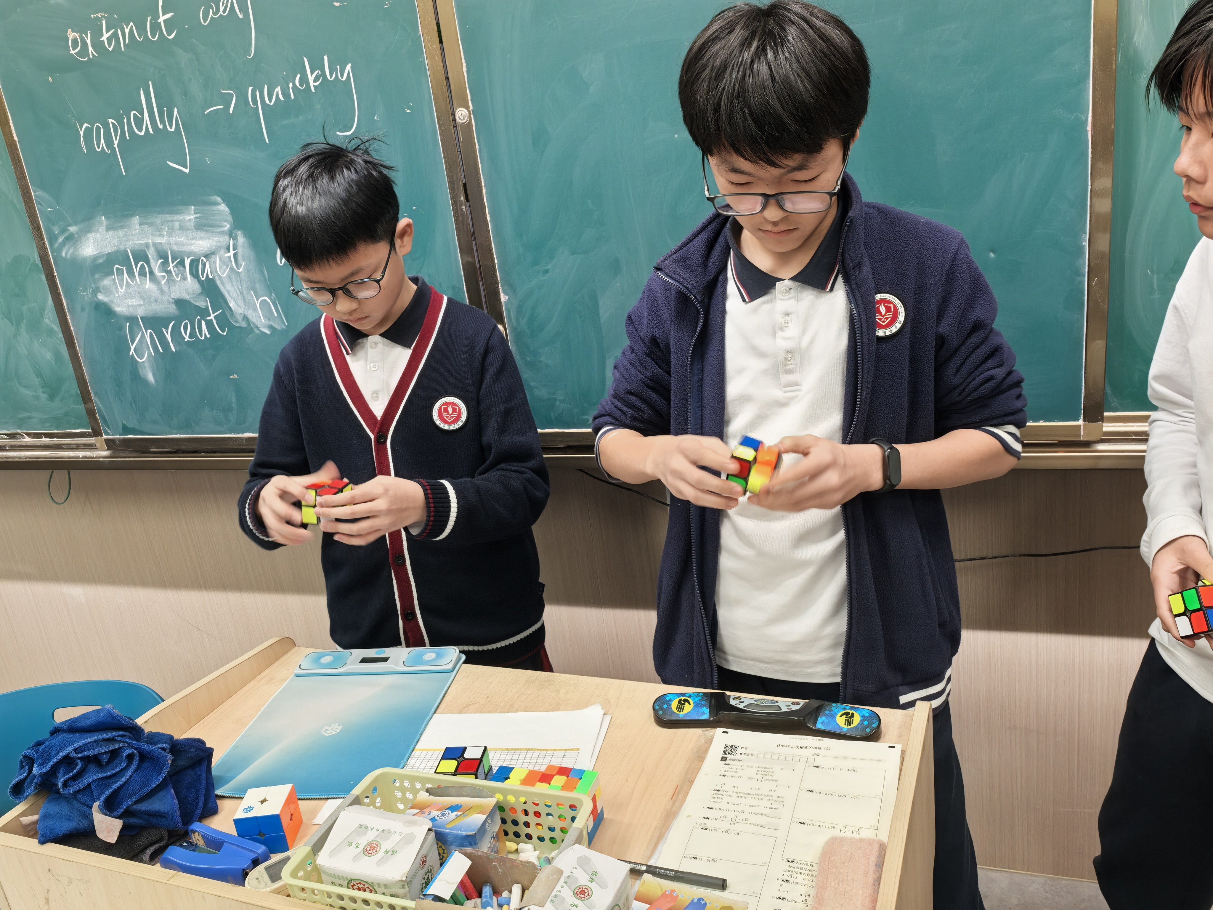 每周五下午13:30,苏外初中部的魔方社团课准时开课,指尖与色块的碰撞声成为校园里最鲜活的旋律。