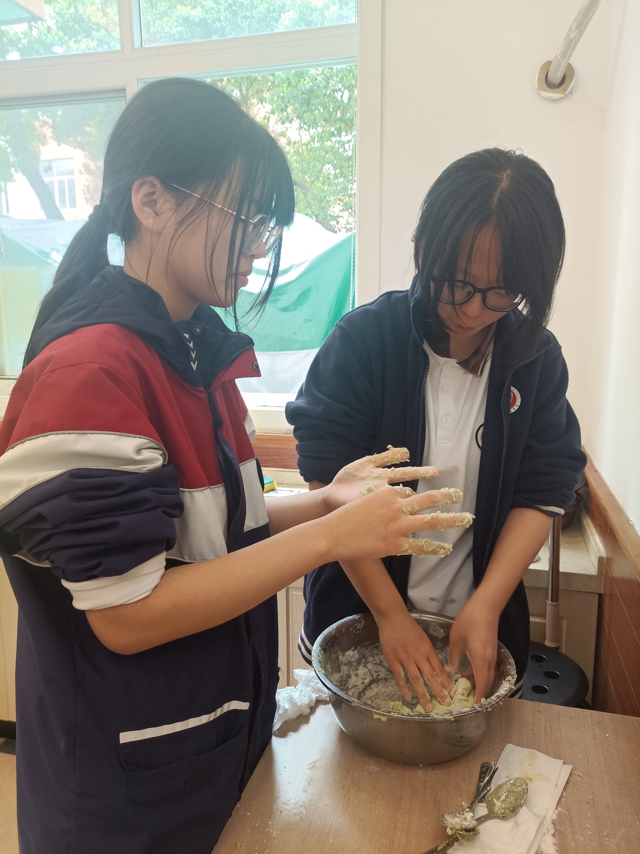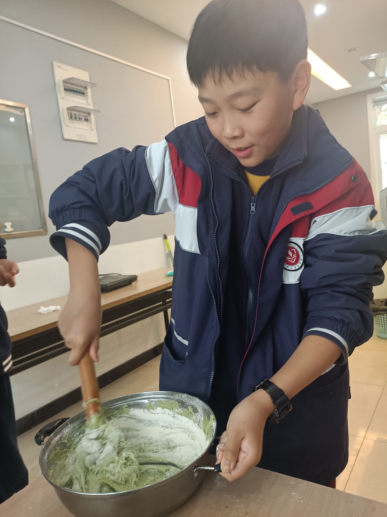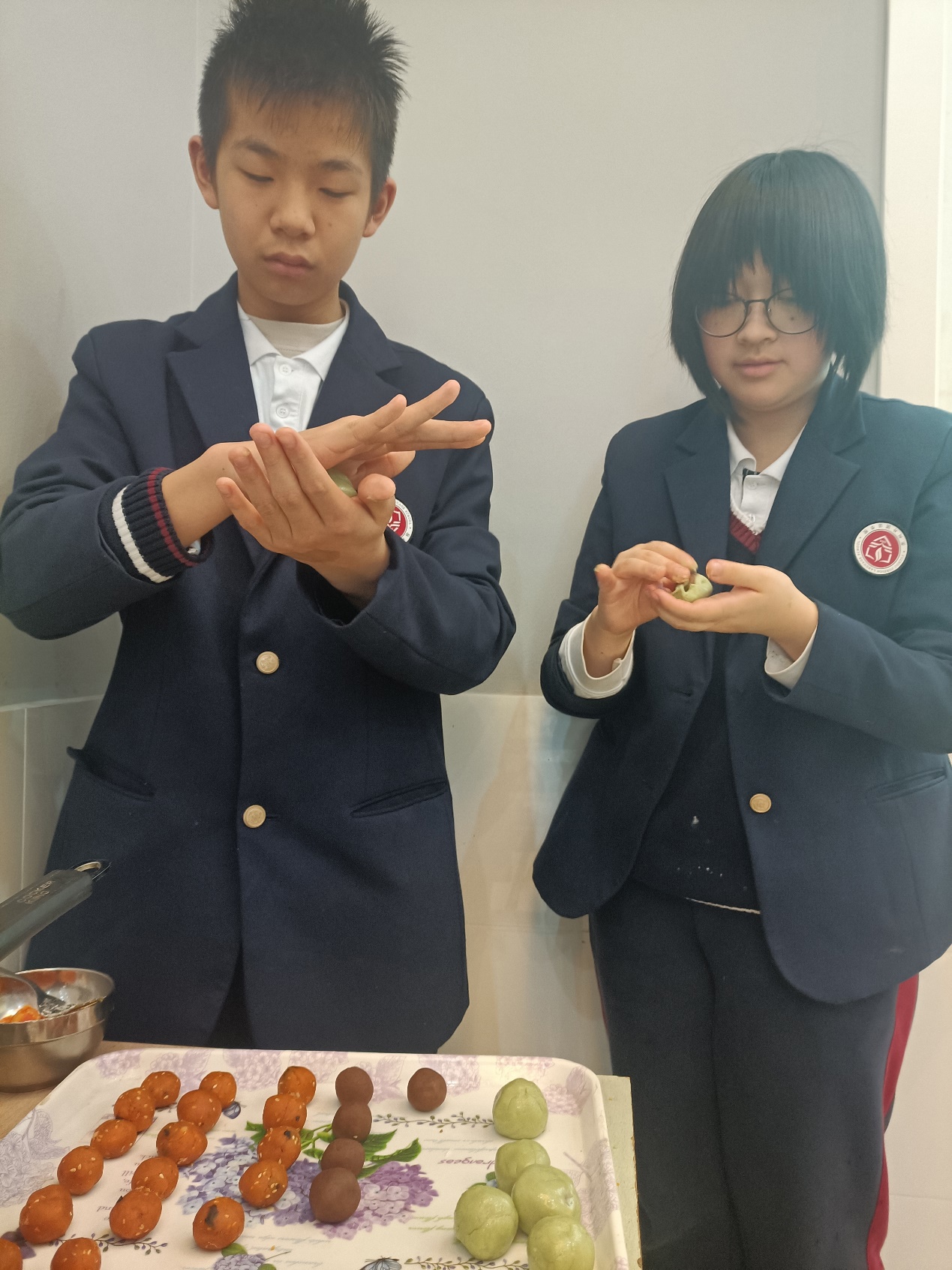 在制作过程中,同学们还纷纷交流各地青团习俗,分享自己曾经吃过的各种馅料的青团,在丰富眼界的同时增进了友谊。