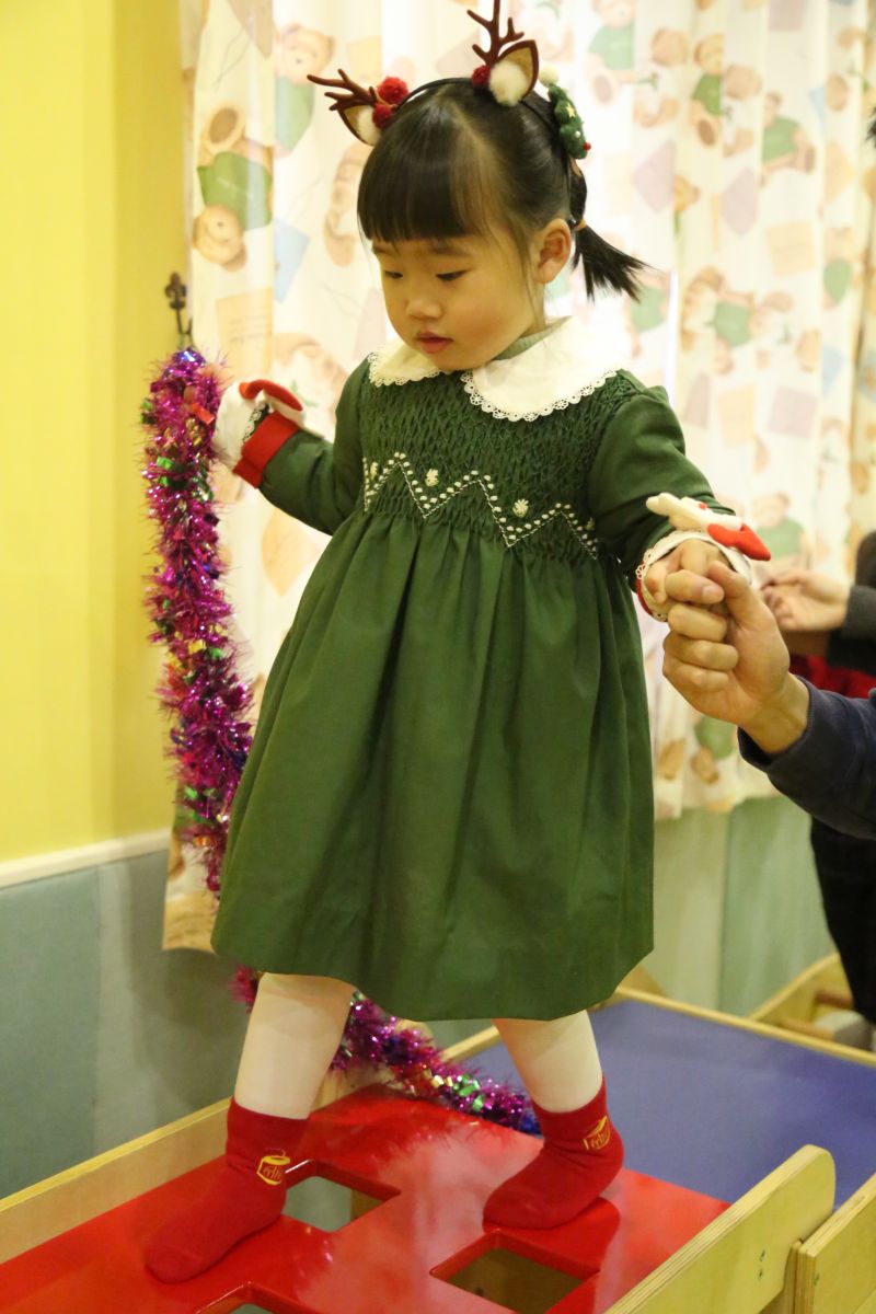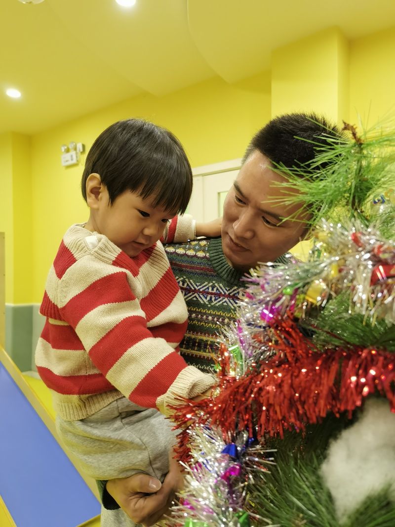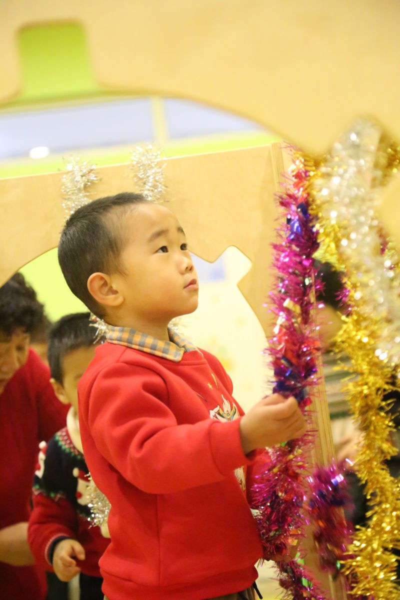 彩条闪闪挂在高处,需要宝宝们快找一找,走过架子,爬上梯子,每一个地方都有小小的人儿努力的身影。宝宝们用心装扮独一无二的圣诞树,获得满满成就感。