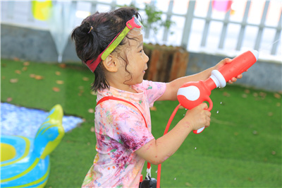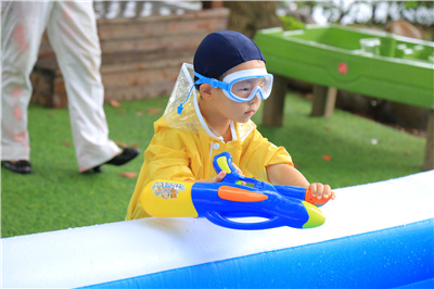 玩水对孩子们来说是天性,在期待中,水枪大战即将开战啦~~~宝宝们纷纷亮出自己的装备,展示自己“扛枪”的英姿,装满“弹药”,在你追我赶,不断的防守进攻中开启夏日中的“激战”,与水来一次亲密接触。爸爸妈妈们也在这一刻融入宝宝们的大战,秒回童年。