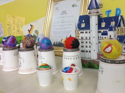 Die Schüler der 8. Klasse an der Fremdsprachenschule Suzhou hatten am 20. April auch eine solche Chance, im Deutschunterricht die Ostereier anzumalen. Sie haben sich vorher schon ganz darauf gefreut und dann selbst gekochte Eier und Farbstoffe mitgebracht. Die Schüler waren sehr kreativ und haben es super geschafft.