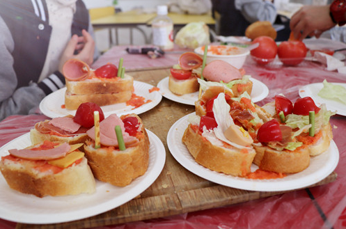 In order to welcome the coming of Christmas this week, teachers and students of Spanish Class have made many different styles of Tapas with olive oil, ham, pink salt and other rich and colorful ingredients.