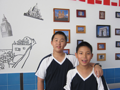 | Hélène et Angelia « Avant d’apprendre le français, nous ne savons que la Tour Eiffel, et que la France est un pays mystérieux. Par conséquent, le français était pour nous une langue difficile. Cependant, après avoir l’appris pendant un mois, on trouve facile de commencer cette langue, parce que le français et l’anglais ont des ressemblances frappantes ! », Angelia ajoute, « Jusqu’aujourd’hui, j’ai déjà pu chanter l’alphapet français et connaître les chiffres français, en même temps, on pourra se saluer en français, merci pour notre école de nous offrir cette bonne chance d’entrer dans le beau français ! » |