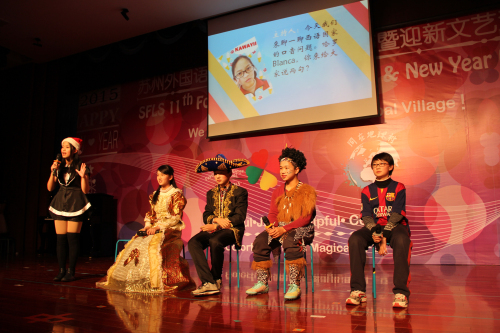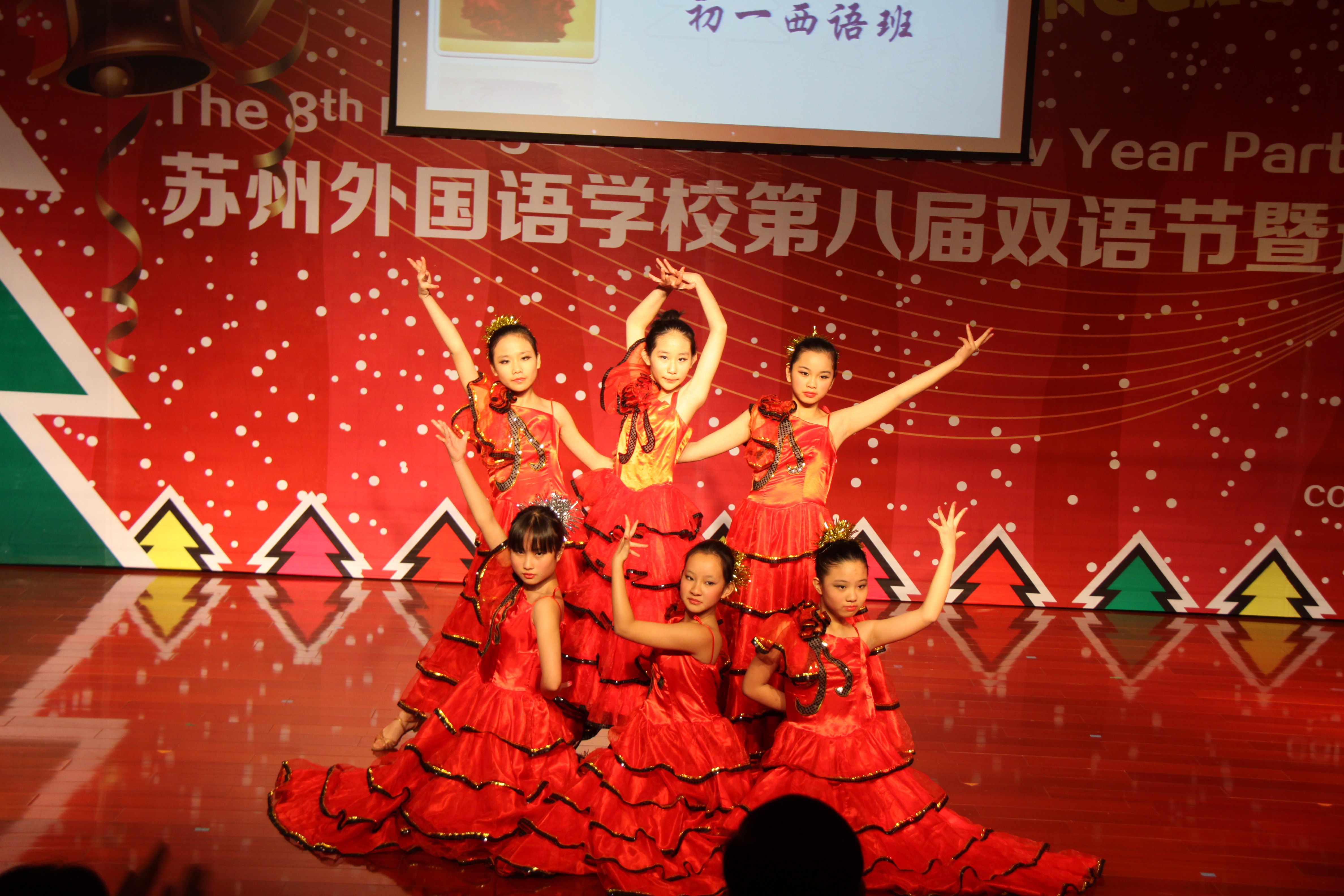 Organizamos una velada del Año Nuevo . Los alumnos del español dan muchas representaciones para toda la escuela, dramas, canciones, danza y sincronizado, etc