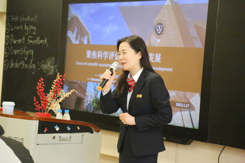 在《幼儿园教育指导纲要》、《3~6岁儿童学习与发展指南》和《幼儿园保育教育质量评估指南》精神的引领下,为了更好地帮助四园中、外教师树立正确全面的教育质量观,科学、客观地对幼儿的健康、认知、社会性发展、情绪情感等关键性指标进行绿色评价,全面了解幼儿在园的发展状况,助力幼儿持续成长,1月18日下午,四园骨干中外教师齐聚苏外本部未来教室,以“聚焦科学评估 探寻幼儿发展”为主题,展开联动研究,一起思维碰撞,提升多元文化课程的有效性,为苏外幼儿园的发展积蓄前行的力量。