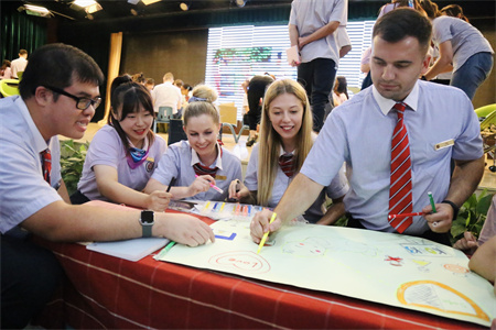 儿童是在与环境的相互作用下学习的,“环境”是一个可以支持社会互动、探索与学习的容器,环境应为儿童的学习与发展提供多种可能性等先进的理念和思想。那我们是如何理解环境的? “我们要给孩子一个什么样的环境”、 “我们想要通过环境带给孩子什么样的教育”、“孩子喜欢什么样的环境”,12名中外教代表围绕圆桌,开启了智慧分享,一个个关键词现场跃然屏上。