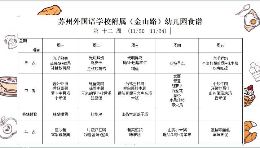 苏外附属幼儿园第十二周食谱