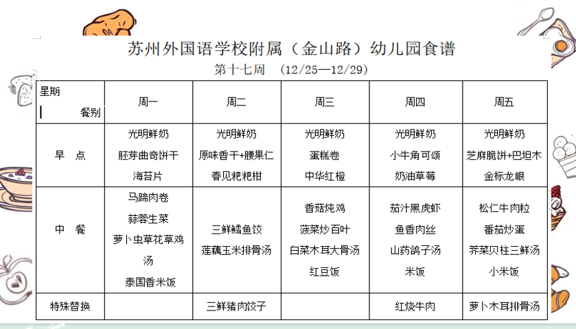苏外附属幼儿园第十七周食谱