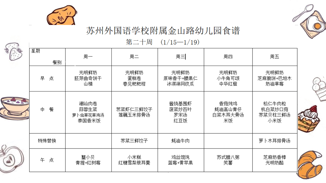 苏外附属幼儿园第二十周食谱