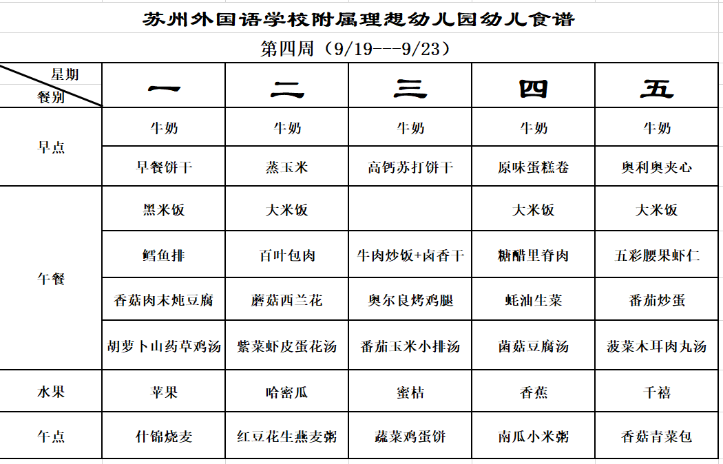 第四周幼儿食谱