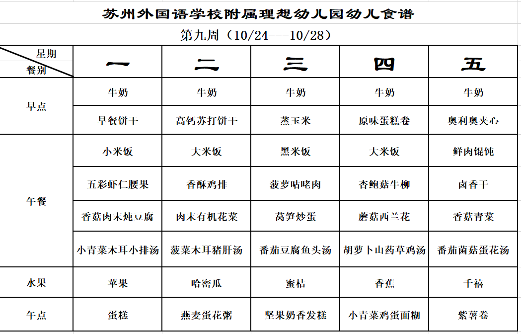 第十周幼儿食谱