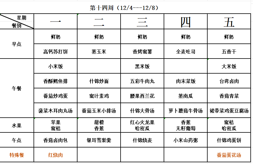 第十四周幼儿食谱