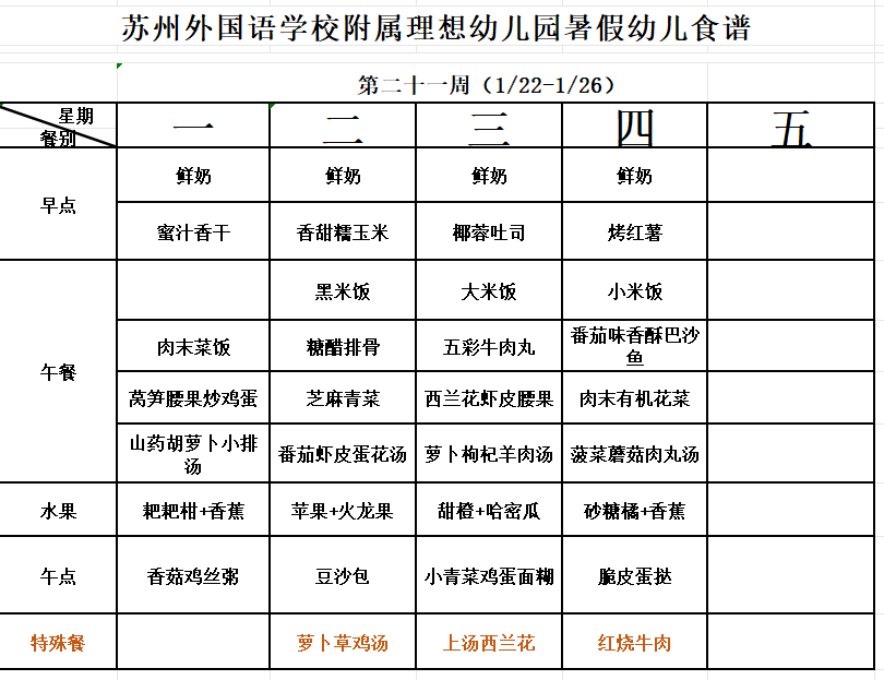 第二十一周幼儿食谱