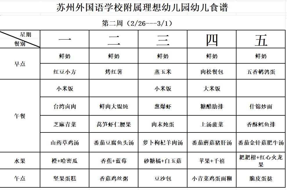 第二周幼儿食谱