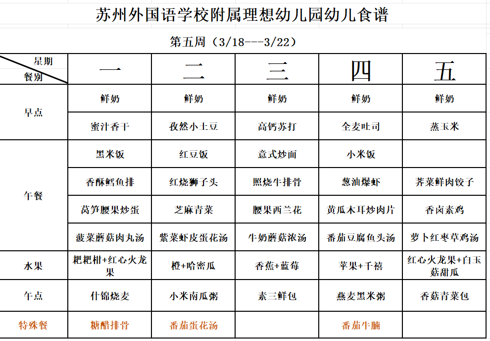第五周幼儿食谱