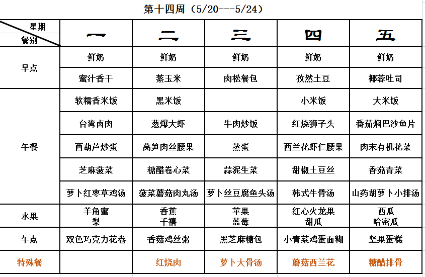 第十四周幼儿食谱