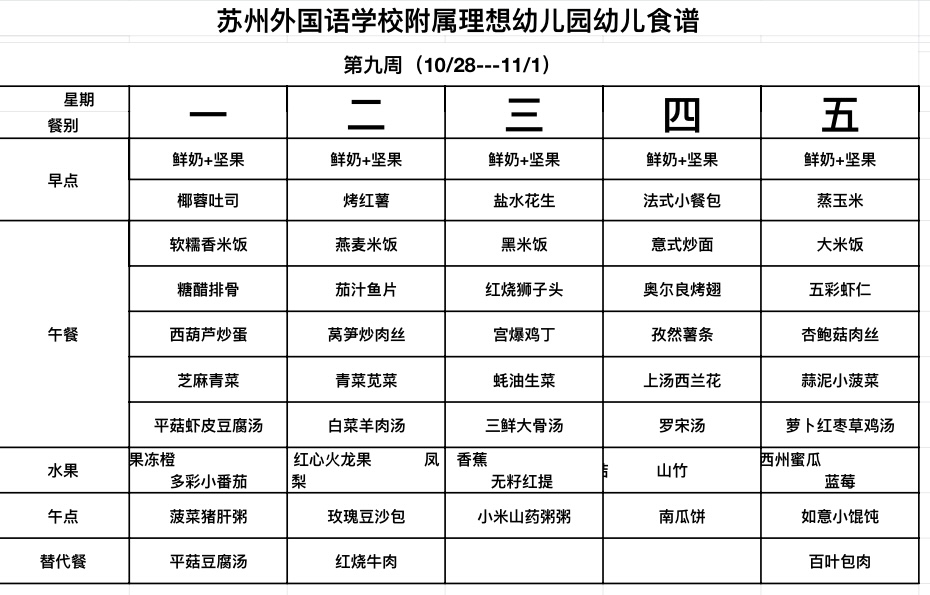 第九周幼儿食谱
