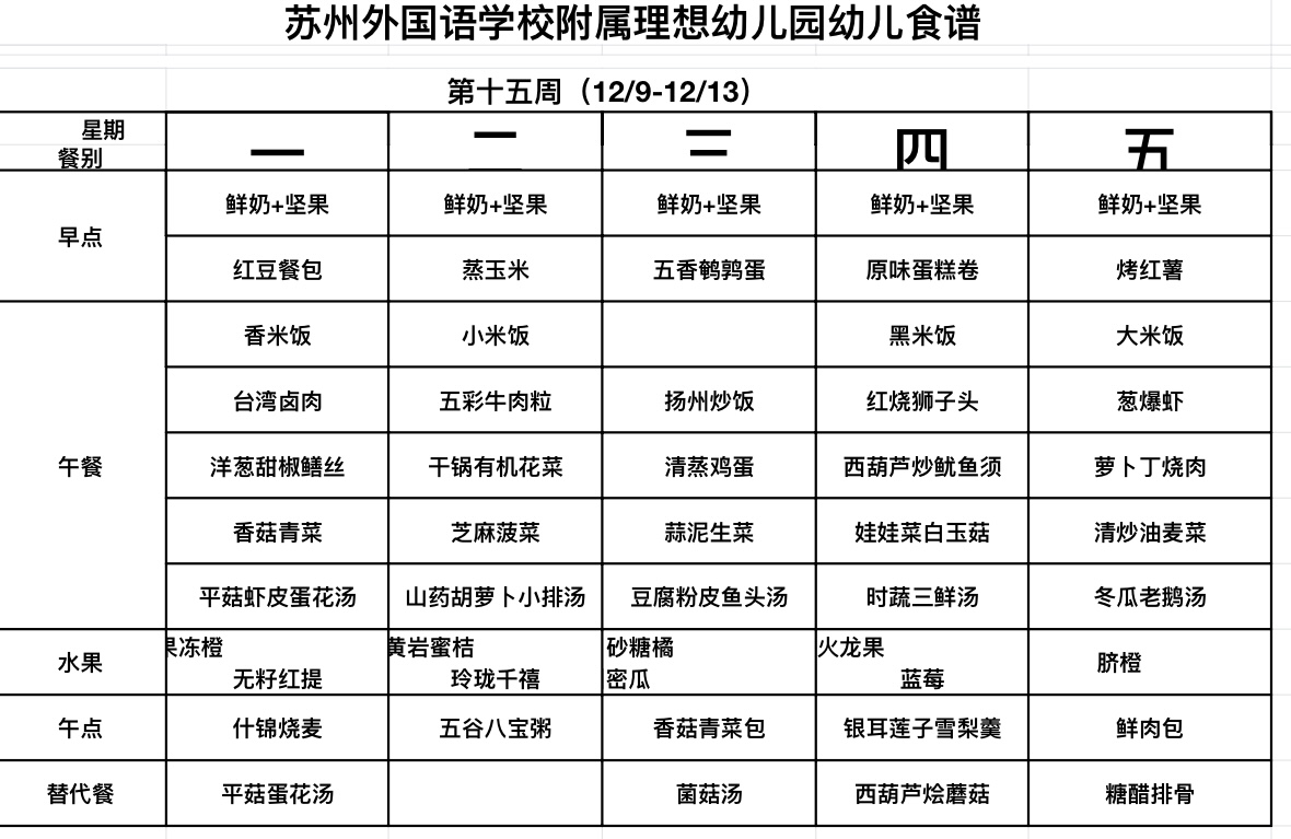 第十五周幼儿食谱