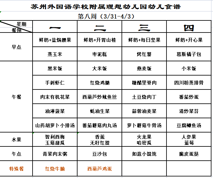 第八周幼儿食谱