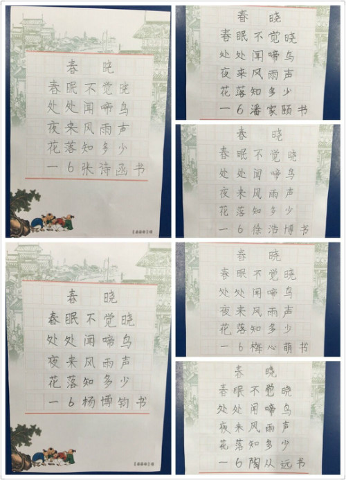 写字是一年级孩子们学习的重中之重,每天吴老师从写字态度、习惯、笔顺、汉字的间架结构等方面进行讲解,尤其是讲解间架结构时更是以字喻人,告诉孩子要互相礼让,谦虚待人。通过近一年的写字教学,孩子们的字进步很大,一6班举行了“墨香情”写字比赛,一张张书法作品让老师和家长们啧啧称赞,祝贺梅心萌、张诗函、杨博钧、潘家颐同学获得一等奖。