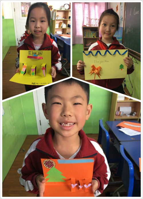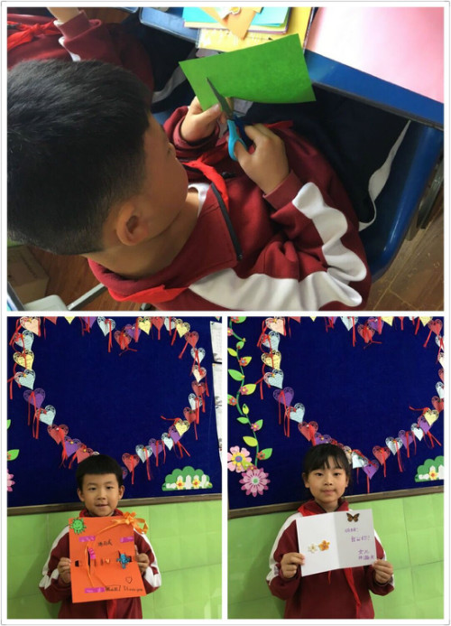 “妈妈,我爱您,节日快乐!”“妈妈,您辛苦啦!”……一句句充满童稚却情真意切的话语,充满了浓浓的温馨,充满了无限感恩。一6班的娃儿们纷纷用自己的双手制作贺卡,同学们展开丰富的想象把自己对母亲的爱,都倾注于贺卡的设计中,将张张卡纸剪成各种图形:有可爱的小动物,有美丽的花儿……在母亲节那天向妈妈表达爱意和感谢!