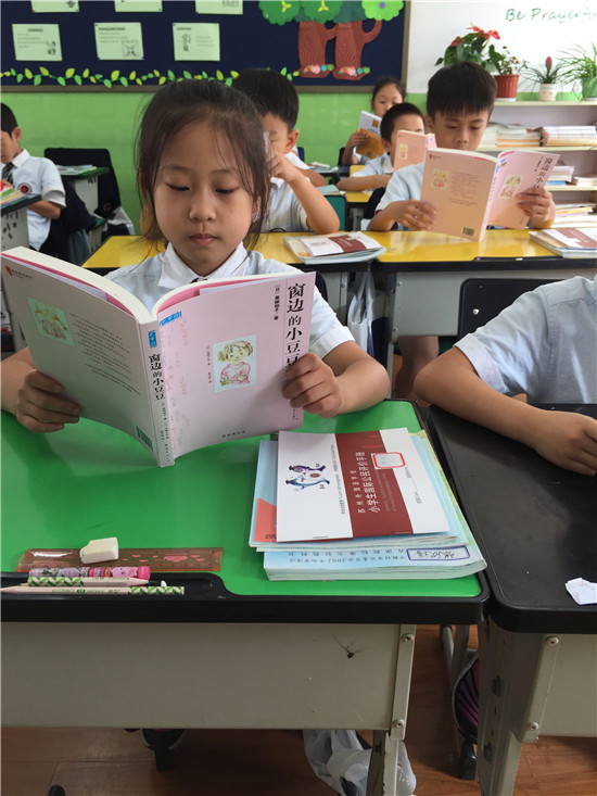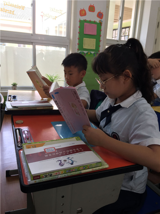 把海三娃的书房延伸到班级里,在老师的引领下,师生共读一本书。瞧,他们正在阅读中文书籍。《窗边的小豆豆》《亲爱的汉修先生》《夏洛的网》……这些耳熟能详的童书,正在海外娃的手中津津有味地阅读着。