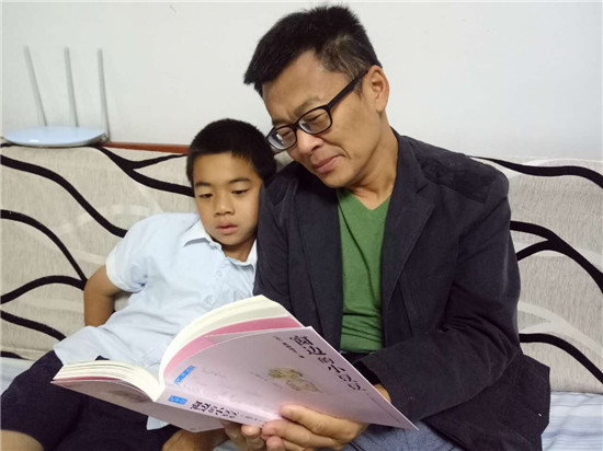 加拿大男孩徐晨耀,正和爸爸共读《窗边的小豆豆》。