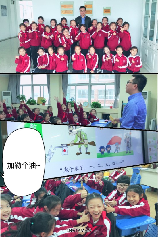 紧接着,“吴老师”将孩子们带进了“快板儿的世界”。热身阶段,老师先摸了摸孩子们的底,令老师也惊喜的是,班级里几个女娃娃的绕口令功夫也不俗,欢呼声与喝彩声让大家学习热情更加高涨起来。拿起快板儿,孩子们热热闹闹跟着吴老师从“小白兔白又白……”说到了“鬼子来了……”; 又从“八百标兵奔北坡……”说到了“出东门,过大桥,大桥底一树枣……”。教室里好是欢腾!虽然孩子们已经口干舌燥,但丝毫没有影响她们的好学劲头儿。