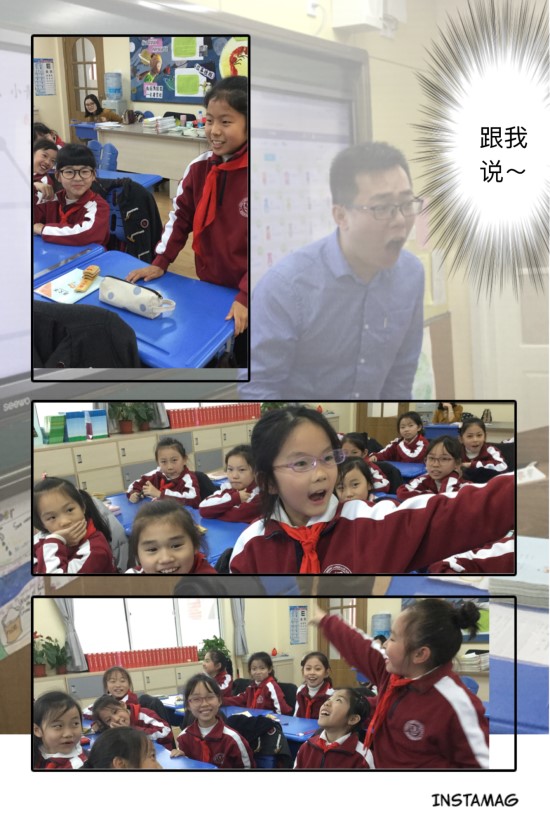 最后,吴老师用自己卓越的模仿能力给孩子们讲了一则耳熟能详的寓言故事“井底之蛙”。孩子们无不感叹道,故事虽然早已知晓,但吴老师却把故事讲”活”了,而这就是声音的魔法秀!孩子们在吴老师的带领下也秀了秀自己声音的魔力!这“魔法”充斥着整个教室!