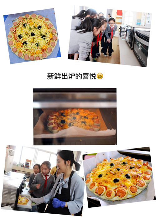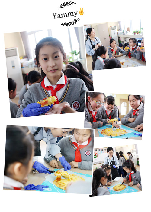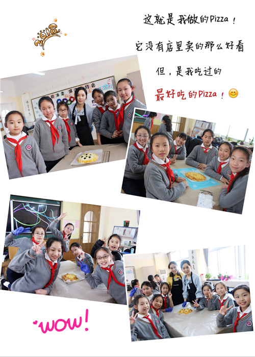我最喜欢的,就是自己品尝自己做的披萨了,因为你自己做的,就是独一无二的,吃起来会感觉有家的美味,而且还会有一种成就感。我们吃的时候,心里都是甜甜的,这时我就想,“爸爸妈妈们,对不起了,我们就自己吃了,因为没办法给你们带了,不过,我回家一定会做一个给你们尝一尝的!” ——华文涵