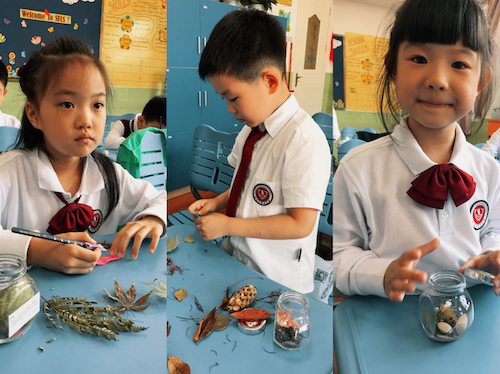AC1班的孩子们捡起了麦穗,拾起了松针,存着他们来苏外第一年的秋天,和与这些有关的回忆。在Asdan的课上孩子们小心把秋天存进了他们的梦想瓶中,瓶子没有塞得满满的,孩子们告诉我还要给梦想留出位置呢。与秋天一起存起来的是他们在冬天想要实现的梦想:我想要今年的冬天下大雪,我要堆一个高高的雪人;我想今年冬天过年的时候,我妈妈能答应给我养一只小黑狗;我想要在期末考试中考出一百分!⋯ ⋯ 孩子们的梦想天真美好,很多梦想就是他们对自己的认知,简单的一两句英文道出了他们最想要的东西。当他们捧起手中的秋日梦想瓶,透过瓶身看到了他们闪闪发光的梦想,晶晶亮的笑容和五彩的秋天一起保存在了这个小小的瓶子里。