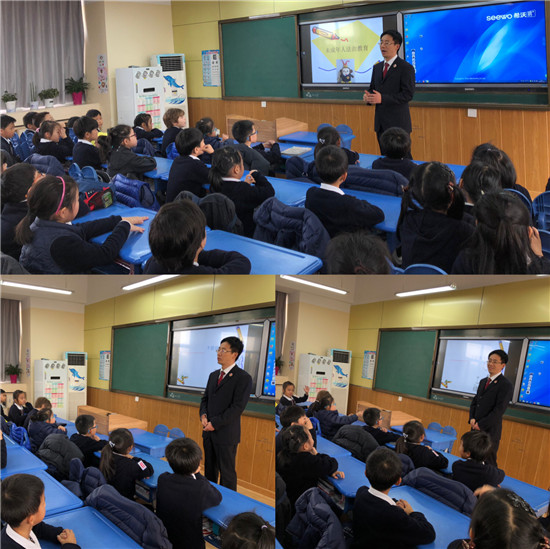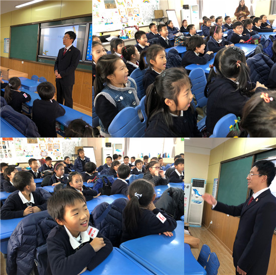案例讨论结束进入问答环节,孩子们积极提问,朱爸爸告诉孩子们,面对坏人,我们要勇敢机智寻求帮助,只要大家一起坚持正义,坏人就不敢挑战法律。最后,朱爸爸说:“没有规矩,不成方圆。在学校,我们要遵守学校规则,到社会上,我们也要做遵纪守法的小公民。”孩子们报以热烈的掌声感谢朱爸爸给大家带来的这堂生动的法制课。
