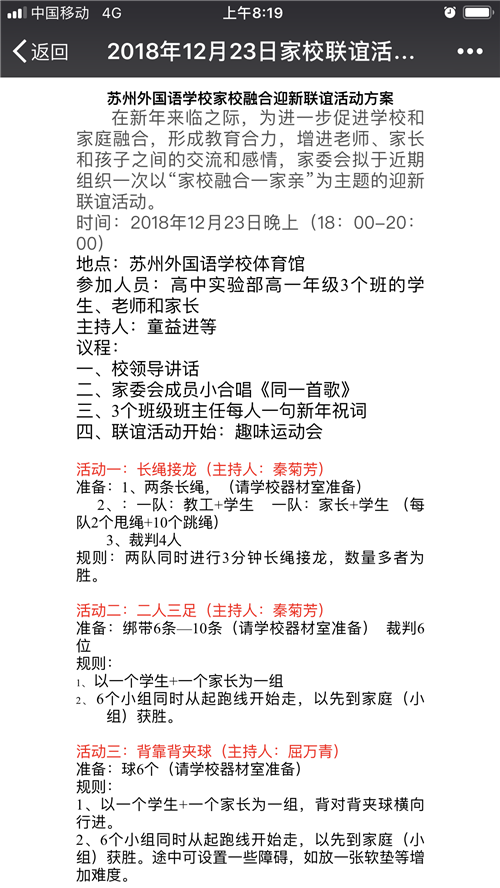 这些丰富精彩活动的背后,我们要特别感谢高一家委会的各位成员,他们精心组织策划了活动,真的有详细的活动执行方案哦,还特地准备了礼品,真的是大大的赞!