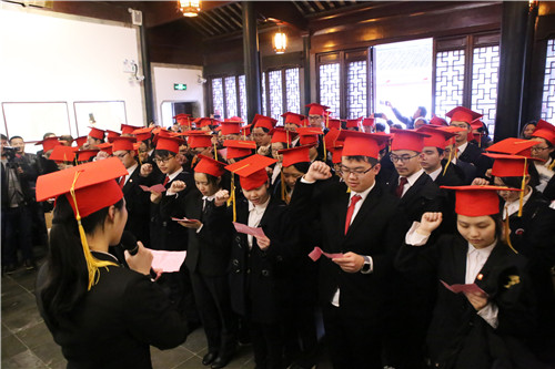 在老师的带领下,93位青年学子到中庭成人签字墙前许下心愿,写出自己心仪的大学,签上自己的大名。在宣誓主会厅——鸳鸯厅,苏州市状元博物馆馆长、苏州大学文学院教授姚鹤鸣先生给大家介绍了状元博物馆的历史掌故,激励孩子们如何成为一个状元,如何成为自己心目中的状元,大家认真聆听,备受鼓舞,衷心感谢姚馆长和廖馆长的无私付出和谆谆教导。教师代表印月花做了高考百日倒计时动员讲话,学生激情饱满,热情高涨。
