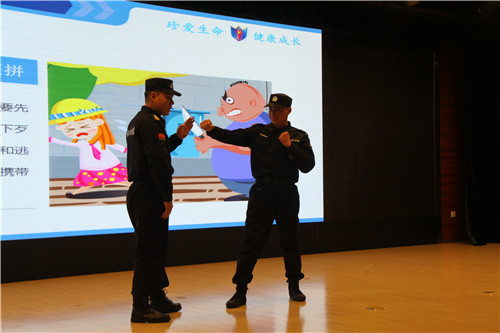 江苏国威保安服务有限公司的李教官给同学们讲解了生活中防火、防电、交通安全等常识,还教大家遇到危险如何自救,如何保护自己。