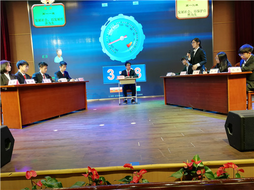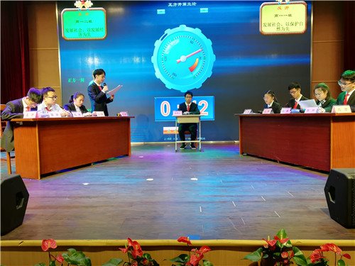 为了更好地丰富学生生活,让我校的中学生了解社会、适应社会,在高中教导处、学校团委、高一年级组共同组织下,实验部高一年级组于2019年4月7日晚间举行了一场辩论赛。辩题为“社会发展,应以发展经济为先还是保护环境为先”。