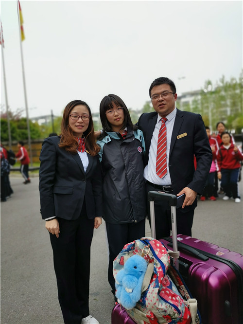 “儿行千里母担忧”,镜头前少年们意气风发,但镜头后的父母眼里都噙着泪水,写满了对孩子的不舍与牵挂。六(2)班的几位女生都是家里的独生女,在家里可谓掌上明珠。自从定下赴英行程后,可以说爸爸妈妈的唠叨是与日俱增。你瞧,那边的杜宇菲妈妈拉着女儿的手说个不停,总感觉还有许多事情没有给孩子交代清楚,心里的不放心溢于言表。当然,从最一开始的修学介绍会到启程之日,家长们对此次的赴英修学期待同样不输于孩子们。所以虽有万分的不舍,但依然选择放手让孩子去历练自己。