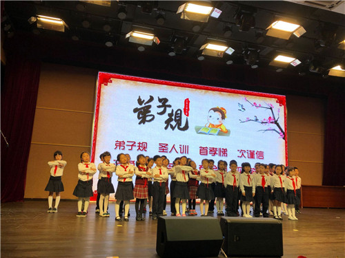 然后,由我们5个班的部分小朋友一起表演了《弟子规》以及关于关于母爱的中英文诗歌朗诵。小朋友们出色的表现赢得了台下妈妈们的热烈掌声。