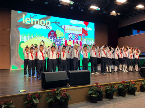 然后是一(3)班小朋友展示他们的英文歌曲《My pet,my buddy》,一(4)班的小朋友展示英文歌曲《Sports Song》。一(3)和一(4)班的小朋友,在校园里生活的点点滴滴,一定也是他们的妈妈们关心的内容,所以,接着我们一起欣赏了他们的校园生活掠影。