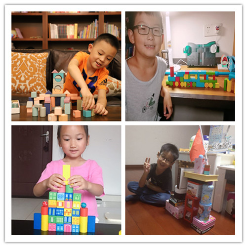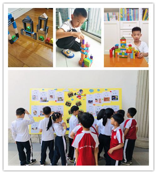 积木的形状比较规则,学生喜欢积木,也有玩积木的体验,玩积木能让孩子们热情地参与数学学习活动。孩子们在用不同形体进行拼搭的过程中,再次感受相关形体的主要特征,加深了对相关形体的认识,形成正确的表象。从孩子们的活动照片中,看得出孩子们兴致勃勃,富有一定的创造性,孩子们真正在玩中学数学。