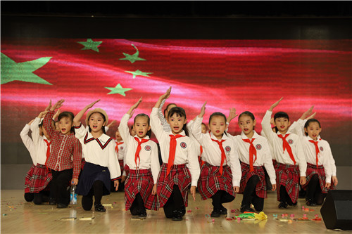 红色是太阳的颜色,它采撷了晚霞最绚丽最迷人的光芒,红色是火的颜色,蒸腾着熊熊的极温;红色是红领巾的颜色,那冉冉升起的五星红旗是最艳丽的红······这就是英特三(1)的同学们,为全场带来的最美丽的色彩——中国红! 他们意气奋发,精神饱满,用最动人的声音,演绎出最精彩的“红”!