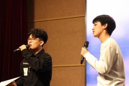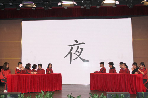 当我们吟诵千古名句时,我们也在体味人间百态;当我们通过诗词与古人心灵对话时,我们也在感受时代的沧桑。一首激动人心的HEY KONG唱出了内心的声音,就好像中国历史上的一首首诗词,曾经道尽了古人的满腔心事。随着动听的歌声,在灯光的照耀下,选手们走上舞台。来自高一、高二年级的12位同学事先通过抽签分成了两个小组,为了今天的诗词大会,他们已经认真地准备了很久,能够在现下这个浮躁的时代,静下心来读书读诗词,真是难得可贵,这些选手都是对诗词有着独特感悟和别样热爱的同学。