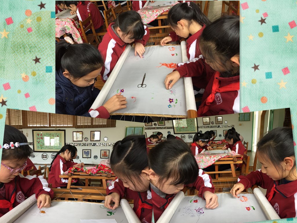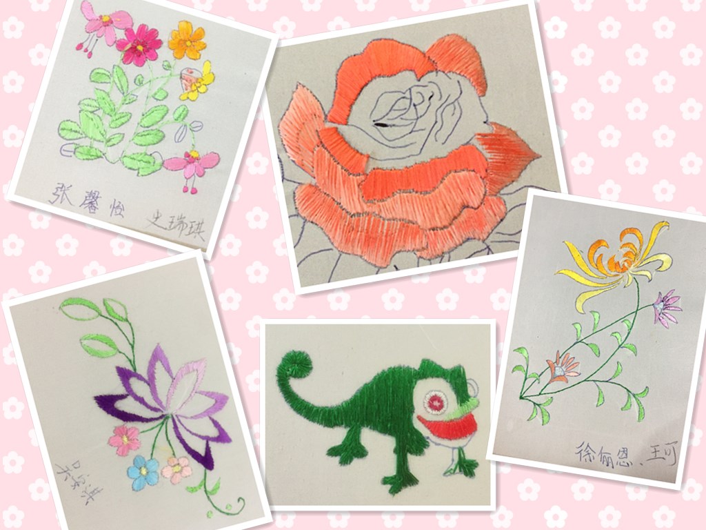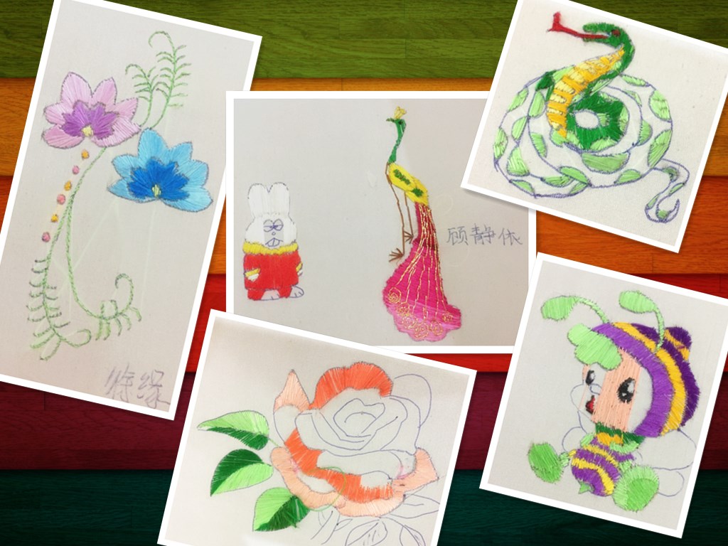 随机采访几位吧,她们由感而发:“我学会了传统刺绣,锻炼了耐心,让自己变得更加细心了。”“刺绣的方法有许多,我们可以把图案绣得更好看,更多彩,但千万别把描图的线显在外面哦!”“学会了刺绣,让我懂得这项手工文化的悠久。”“我学会了刺绣,也学会了许多针法。”“我知道什么是刺绣,知道了怎么绣花样。”“我学会了斜绕针、散套针。”“我能独立完成作品了,老师教我绣稀针,很漂亮。”“我学会了如何套针、直针等,很开心。”“我学会了怎样刺绣和怎样用针。”……
