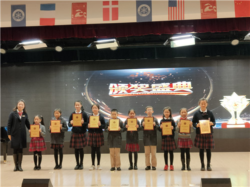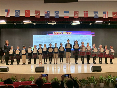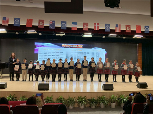 接着是宣读获奖名单。2009-2010第一学期中涌现出了许多虚心好学、善于合作、敢于拼搏的学生,国际一部的王老师宣读了艺术之星、学业进步奖、单项特长奖的获奖名单,杨丹丹老师宣读了本学期获得宋庆龄国际公民奖、英特班文明学生奖、社会活动奖的获奖名单,宦佳娣主任宣读获得居里夫人学业成就奖、撒切尔夫人杰出管理奖、英特班学业优秀奖的获奖名单,吴雅静主任宣读本学期SuperStar的获奖名单,super star优秀代表还做了精彩发言,国际一部家委会主席陈燕喃女士也介绍了家委会的各项工作。然后,由陈静老师给优秀义工家长颁奖。吴雅静主任最后为大家揭晓了本学期优秀班、文明班的评比结果。